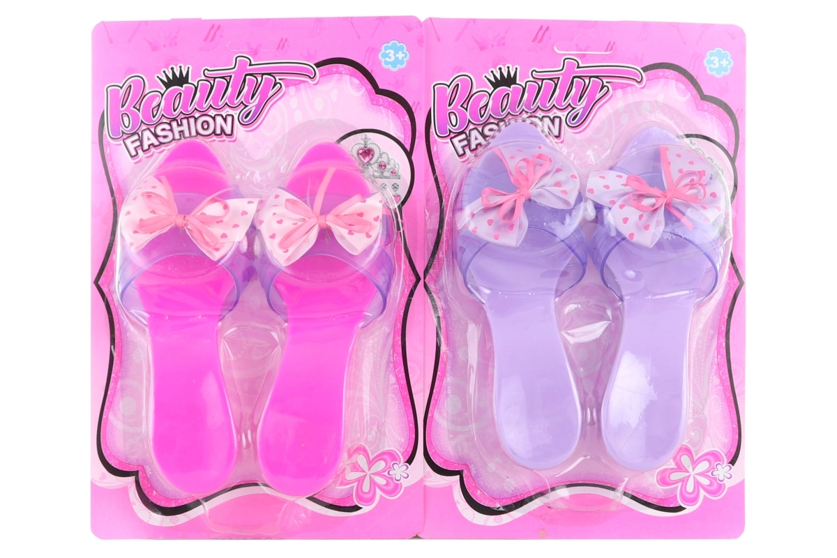 Очарователни пластмасови пантофки с елегантна панделка ще зарадват всяка малка любителка на красивото. Леки са, обуват се лесно и са идеални за игри на принцеси или преобличане. Пантофки с панделка, удобни за детска игра, перфектен аксесоар за детския гардероб.