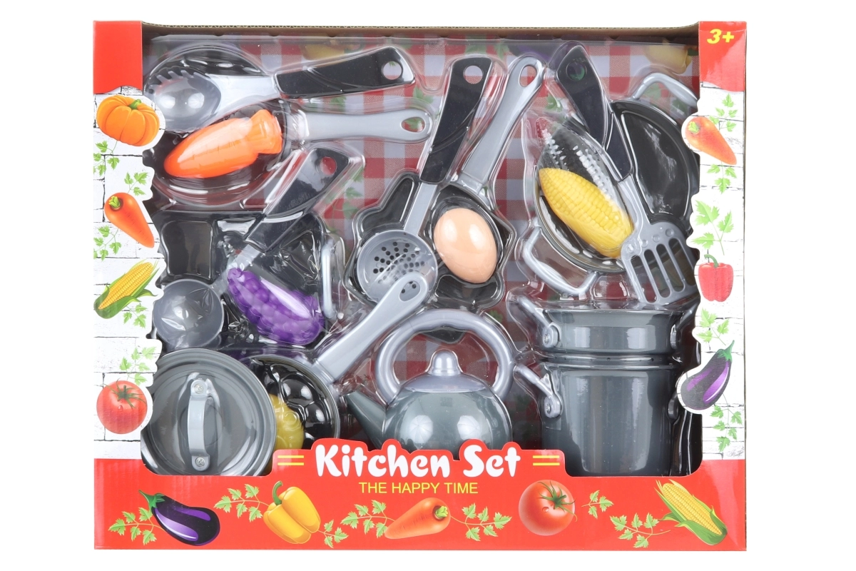 Този богато оборудван комплект детски съдове ще зарадва всеки малък готвач. Благодарение на разнообразния избор от съдове и храни децата могат да имитират готвене като възрастните и безопасно да развиват своите умения. Подходящ за ежедневна игра у дома и в детската градина.