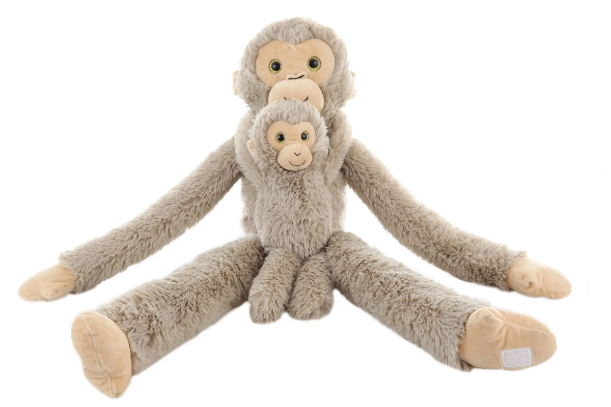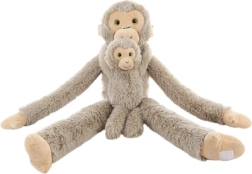 Тази мека плюшена маймуна с бебе ще спечели сърцето на всеки малък любител на животни. Дългите, гъвкави ръце с велкро позволяват маймуната да се гушка с детето или да се окачва, докато отделящото се бебе развива ролева игра и фината моторика.