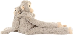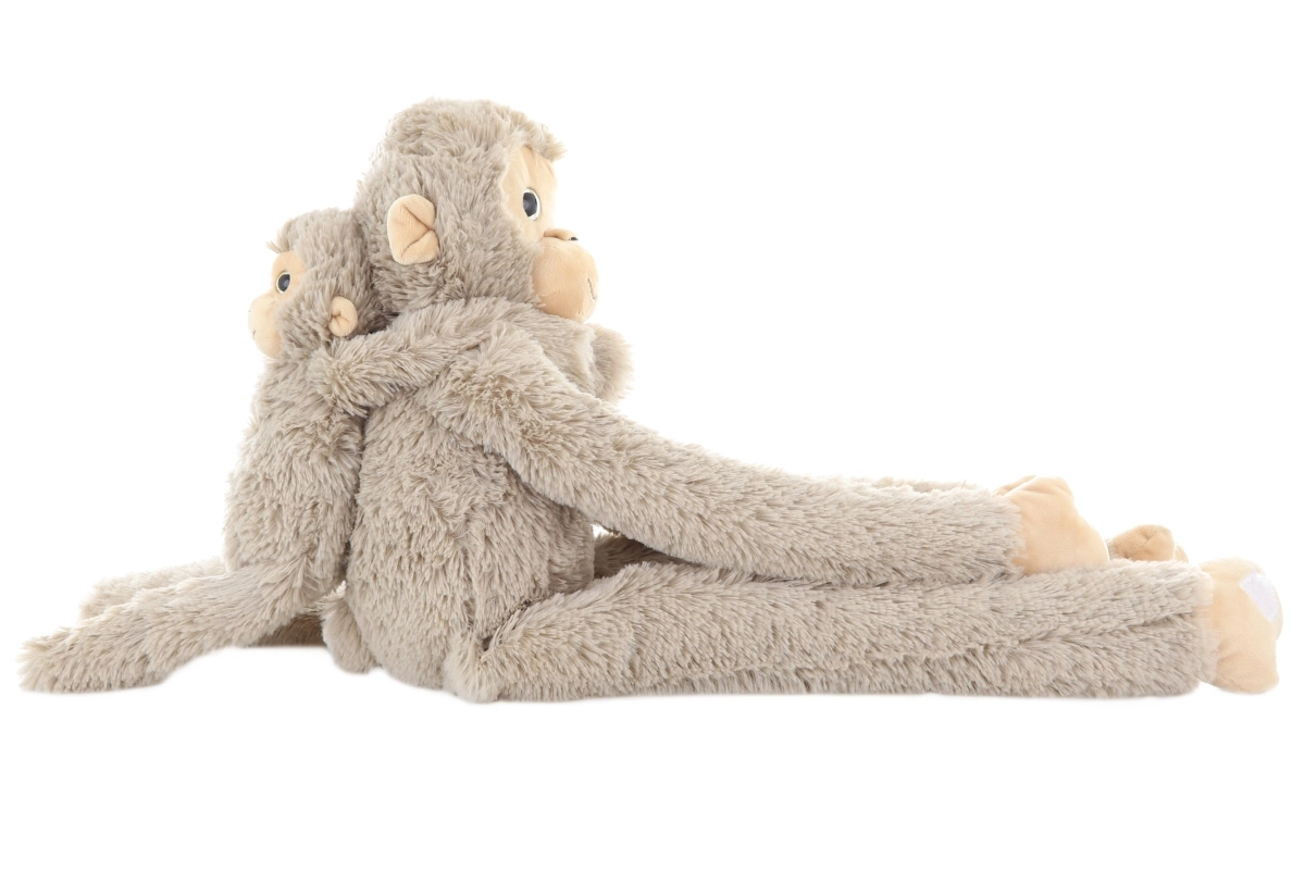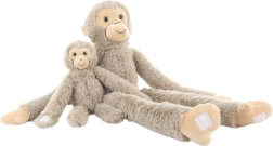 Очарователна плюшена маймуна с отделящо се бебе е идеалният приятел за гушкане за деца още от раждането. Благодарение на екстра дългите крайници и велкро ленти на ръцете лесно се прегръща около детето, креватчето или количката. Меката, кадифена изработка гарантира комфорт при гушкане и заспиване, а свалящото се бебе стимулира фантазията при съвместна игра.