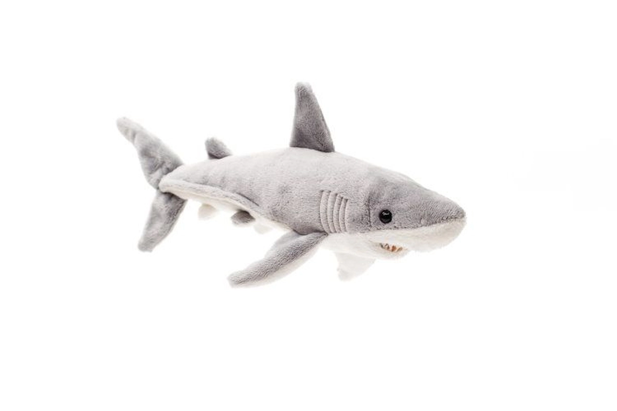 Открийте реалистично изработената плюшена акула, която е идеална като гушлив приятел за леглото и за път. Благодарение на нежния пълнеж и меката повърхност предлага максимален комфорт при гушкане, като в същото време е лека и лесна за хващане дори от най-малките.