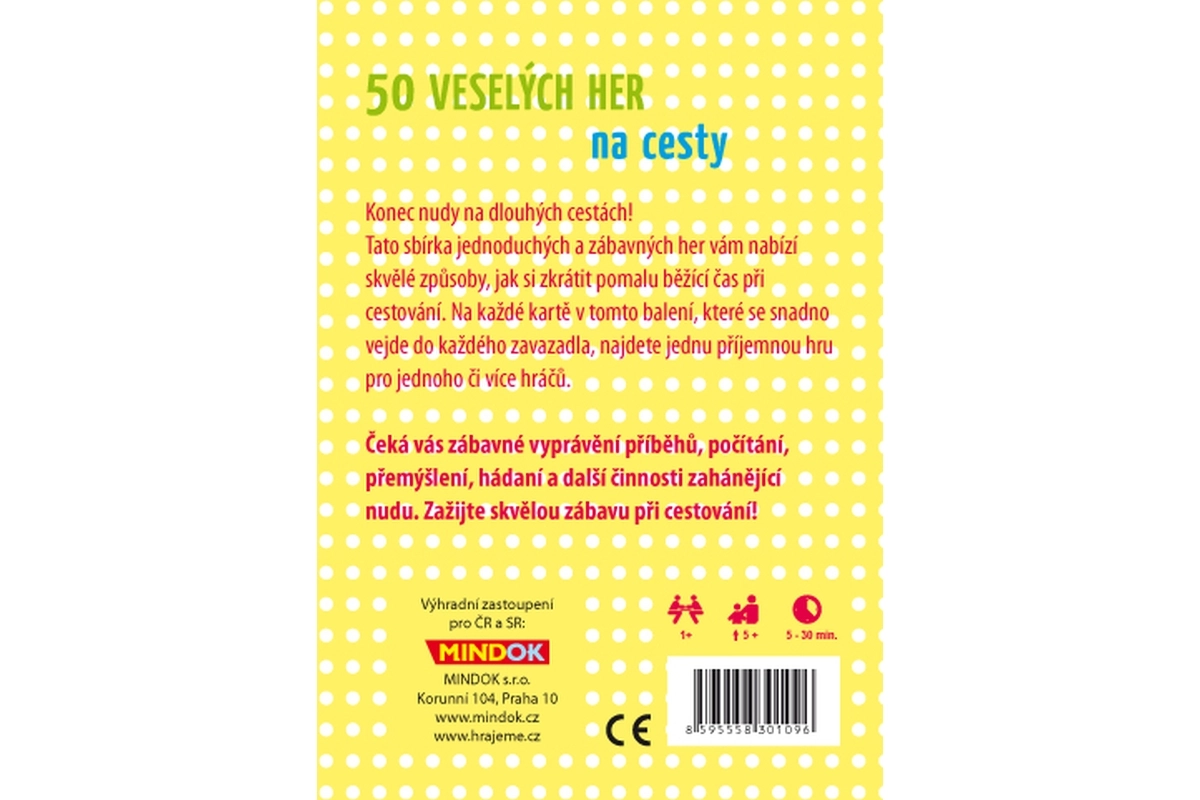 Насладете се на пътуването без скука с компактния комплект „50 весели игри за път“. В комплекта ще откриете карти с лесни активности за един или повече играчи – идеални за кола, влак и самолет. Бързо забавление, лесни правила и много вариации ще гарантират, че времето по пътя ще отлети неусетно.