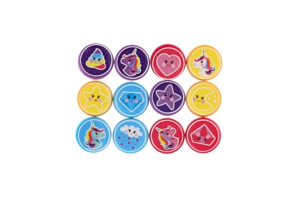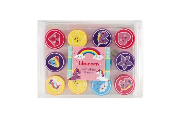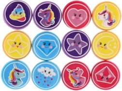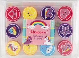 Всеки комплект съдържа 12 различни печата с еднорози, звезди, сърчица и облаци. Децата могат лесно да смесват и комбинират отпечатъци при изработка на картички или за украса на тетрадки.