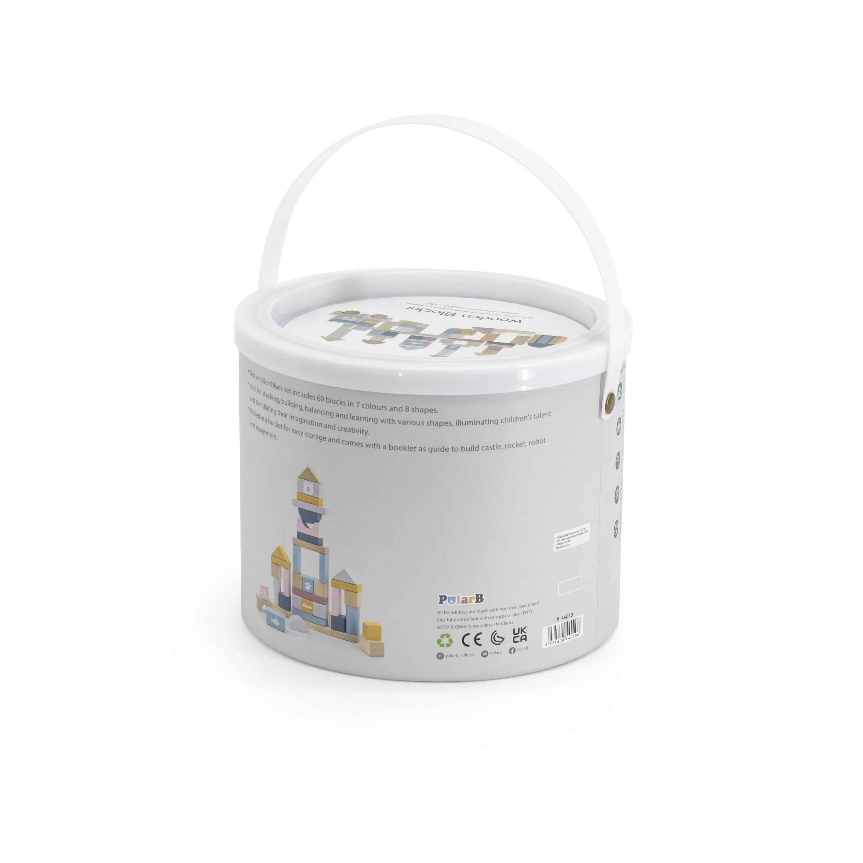 Дървените строителни блокчета Viga PolarB носят радост от откривателството и създаването. Комплектът включва общо 60 блокчета с различни форми и цветове, които стимулират детското въображение и развиват сръчността. Благодарение на използваните нетоксични бои са безопасни за игра и щадящи природата. Съхранението в пластмасов контейнер позволява лесно и практично прибиране след всяка игра.