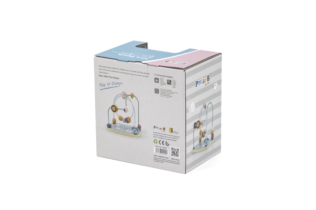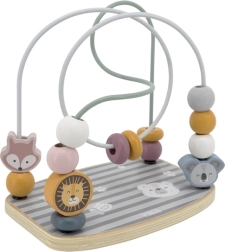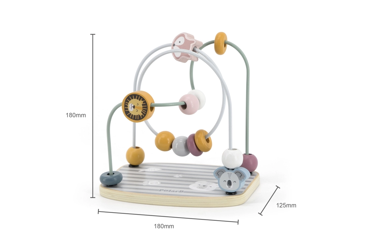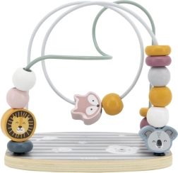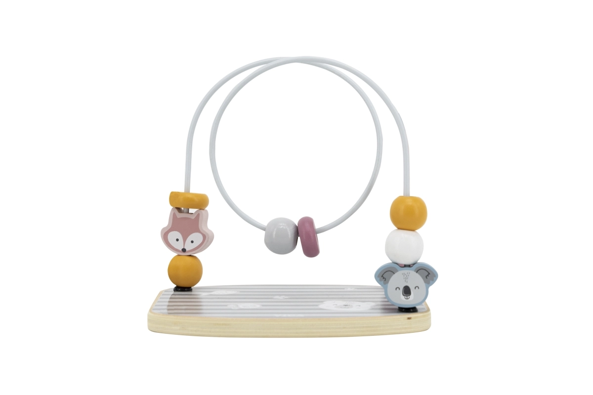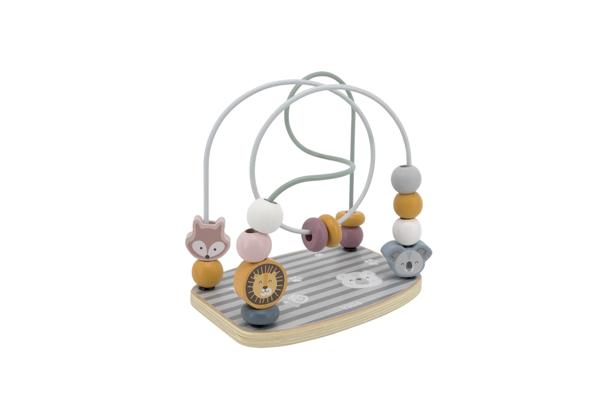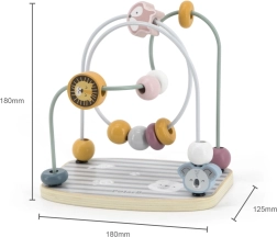 Открийте дървения мъниста-лабиринт, който мотивира развитието на фината моторика и предоставя образователно изживяване за малките деца. Тази качествена играчка е изработена от естествено дърво и използва безопасни бои, което гарантира безопасност и естетичен вид. С цветните мъниста и животински форми, нанизани по извити метални контури, децата укрепват своята координация и фина моторика.