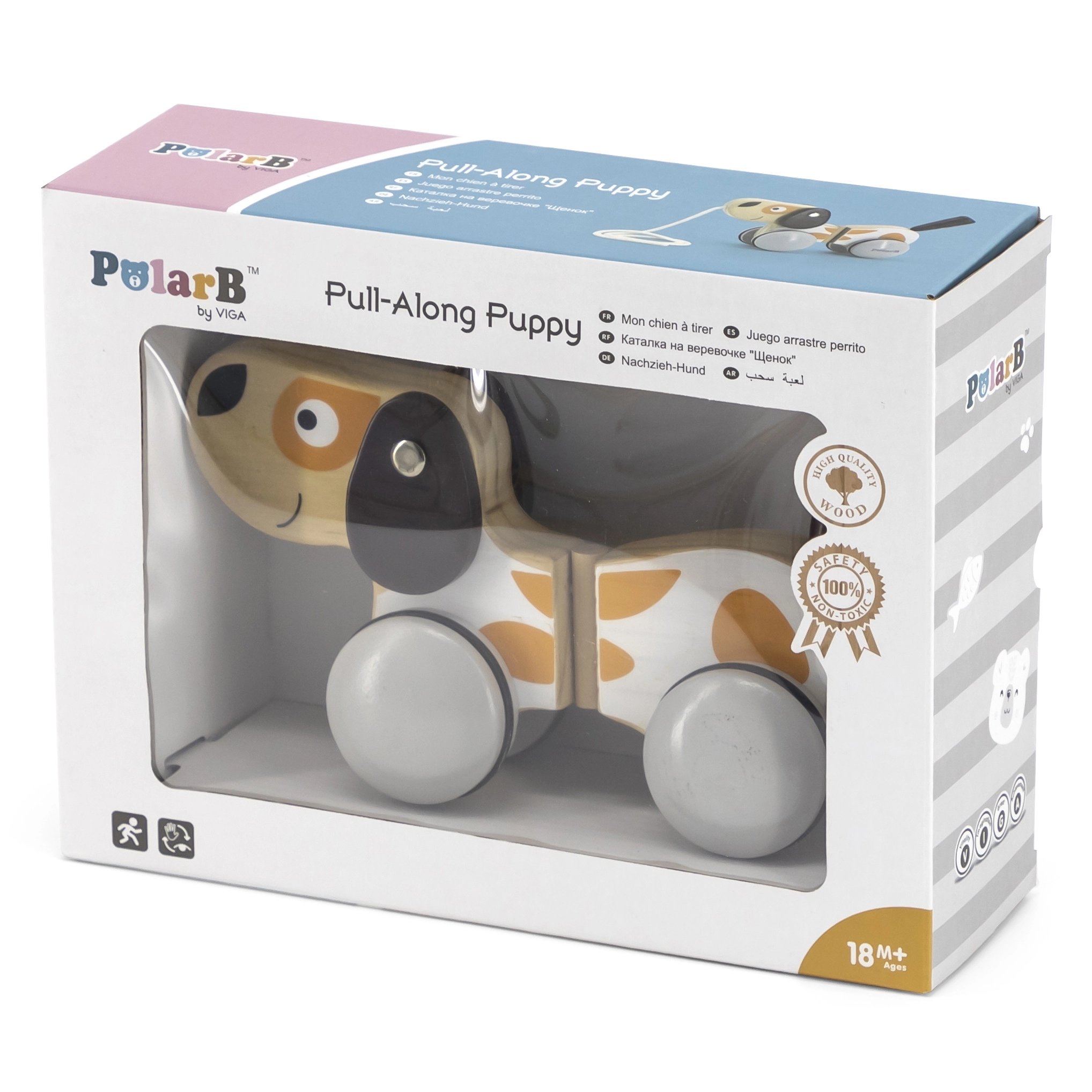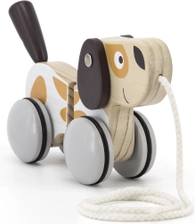 Дървеното кученце на връв от колекцията VIGA POLARB съпровожда децата по време на първите им разходки и превръща всяка стъпка в забавление. Благодарение на гумените обвивки на колелцата движението е тихо и плавно, а когато детето дръпне, опашката весело помахва.