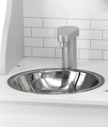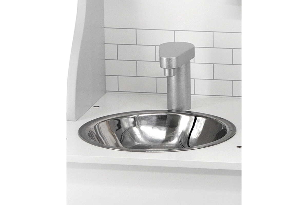 Вграден таймер и шкаф за съхранение на съдове насърчават организираността, отговорността и развитието на фината моторика по време на игра.