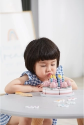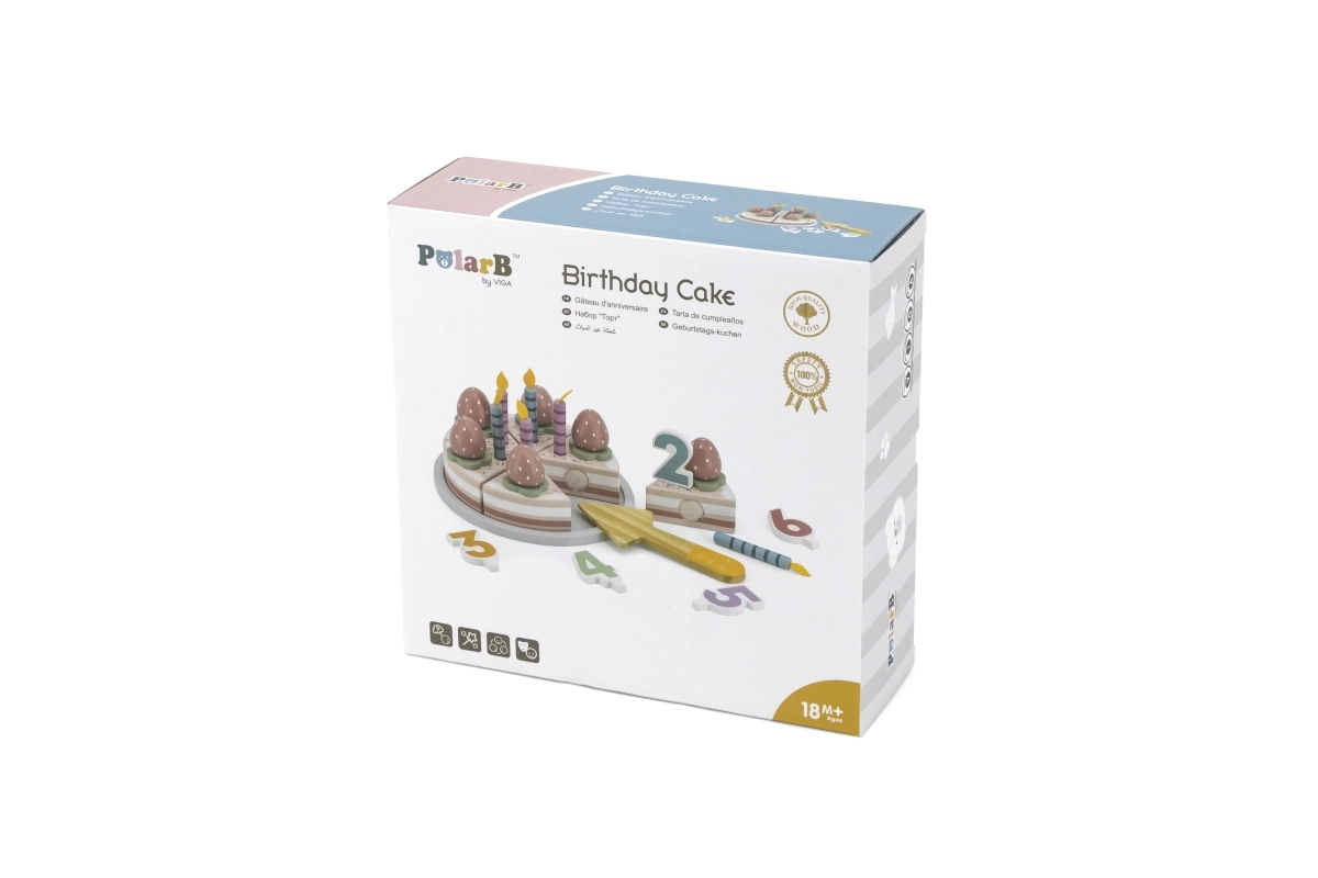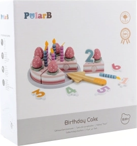 Поднесете на децата радостта от празника всеки ден. Дървената рожденоденска торта POLARB може да се реже на 6 порции, да се украсява със свещички и ягодки и да се сервира с включената шпатула. Цветните цифри насърчават децата да разпознават числата и да броят просто, а реалистичната игра на празнуване развива социалните умения.