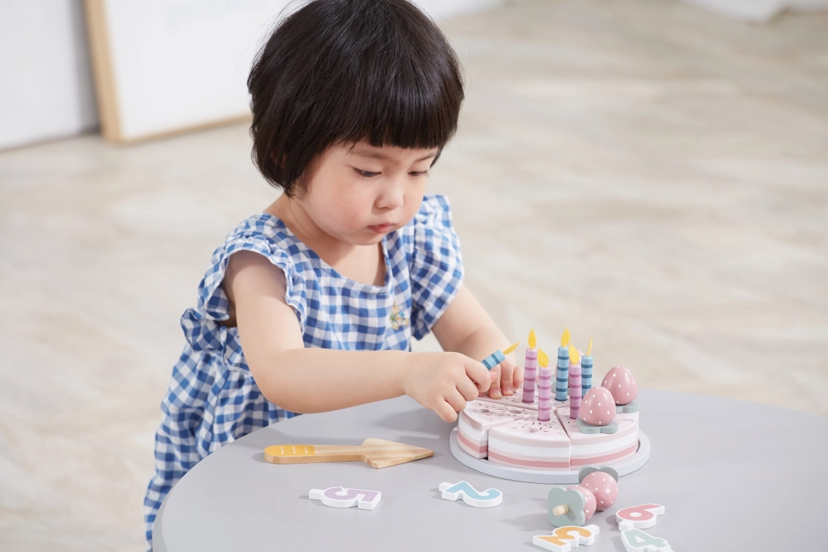 Рязането, декорирането и поднасянето на тортата развиват фантазията, фината моторика и общуването по време на съвместна игра.