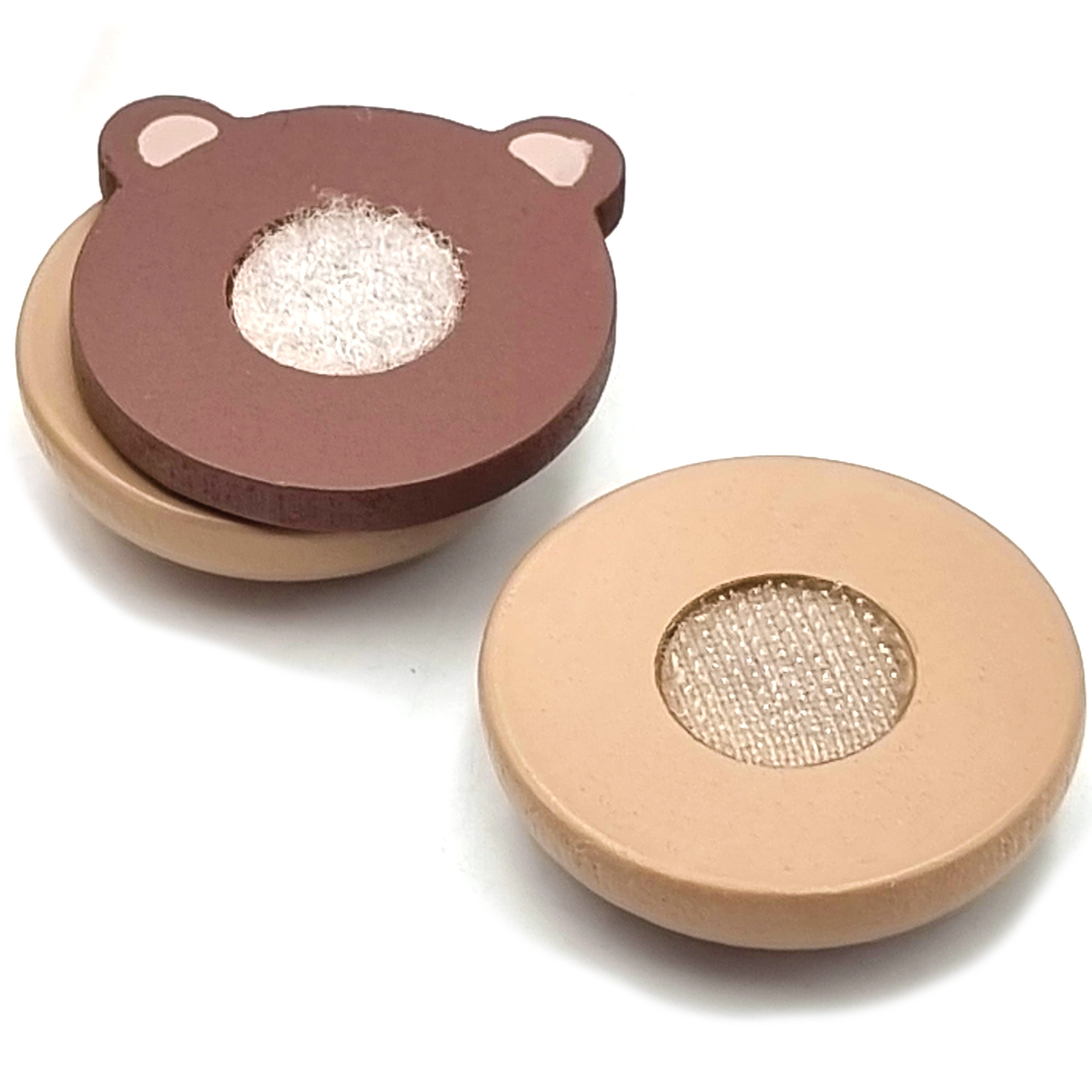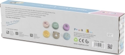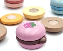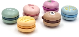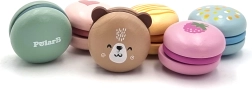 Този очарователен комплект съдържа шест пъстроцветни дървени макаронки с оригинални мотиви. Частите се свързват с велкро, така че децата лесно „смесват“ нови вкусове и шарки. Идеално допълнение за детската кухня, магазин или сладкарница.