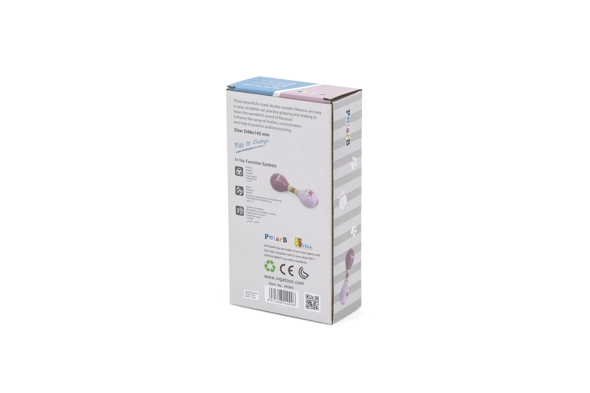 Тази качествена дървена марака е проектирана за малки ръчички – лека е, гладко обработена и се държи лесно. Благодарение на двойната конструкция създава приятни звукови ефекти, които подпомагат сетивното развитие, усещането за ритъм и първите музикални открития.