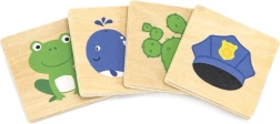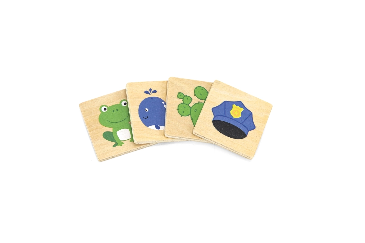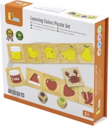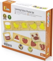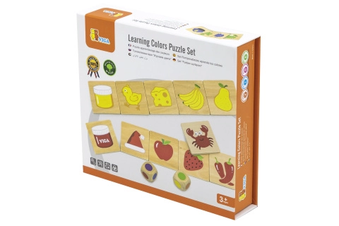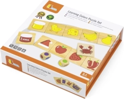 Дървена образователна игра, с която децата се учат да различават цветовете и да ги съпоставят правилно с картинките. Децата не само опознават цветовете, но и придобиват познания за предмети, растения или животни, свързани с тези цветове, което обогатява знанията им за света около тях.