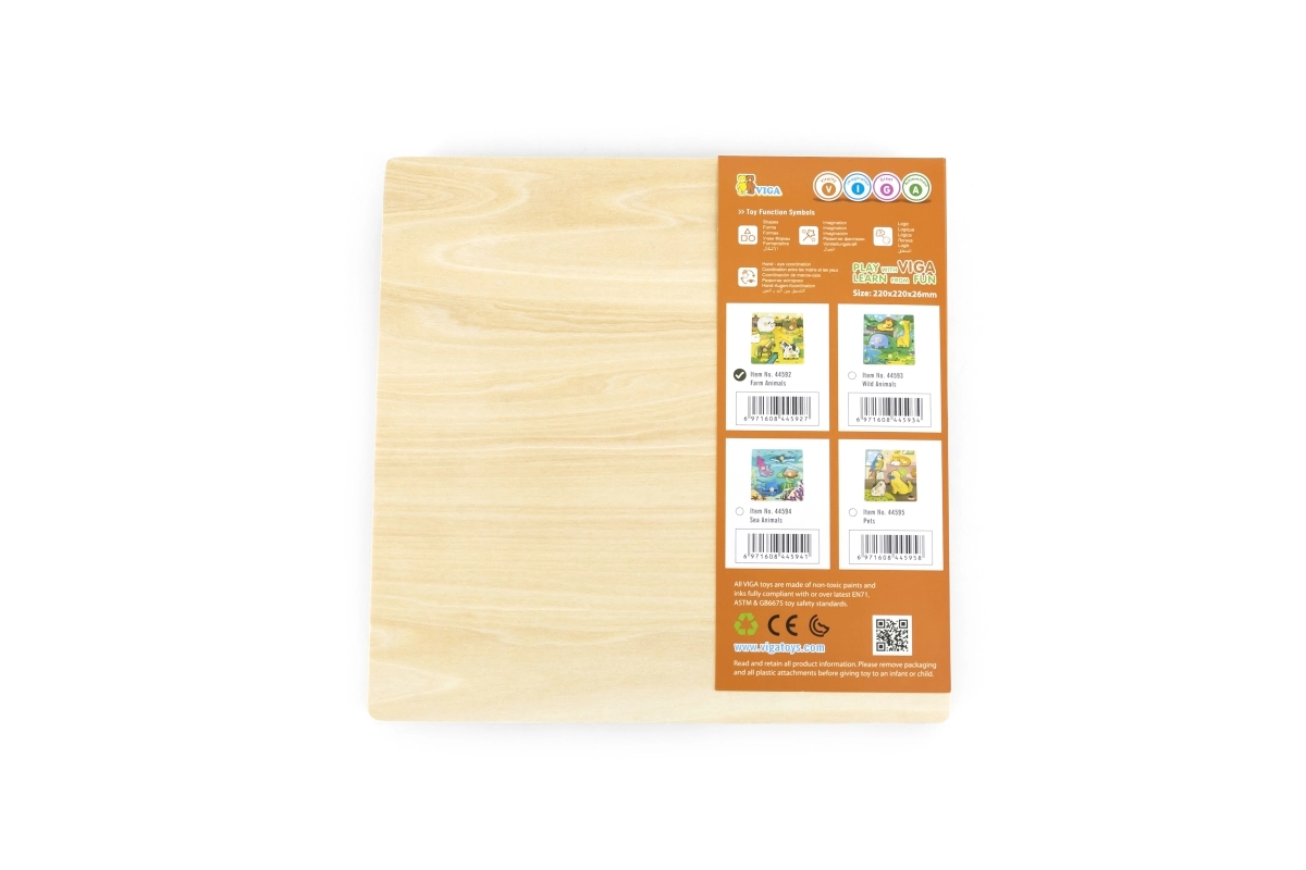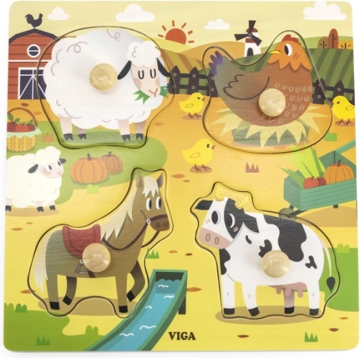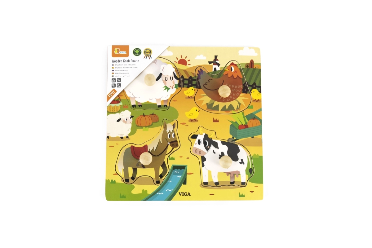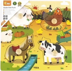 Тази дървена владишка е перфектен избор за родители, които искат да подкрепят развитието на моторните умения на своето дете. Тя предлага красиви илюстрации на фермерски животни – овце, кокошки, коне и крави. Всеки елемент е оборудван с практично копче, което позволява лесно хващане и манипулиране от по-малки ръчички. Пъзелът е проектиран с грижа за безопасността и издръжливостта, така че е идеален за деца от 12 месеца.