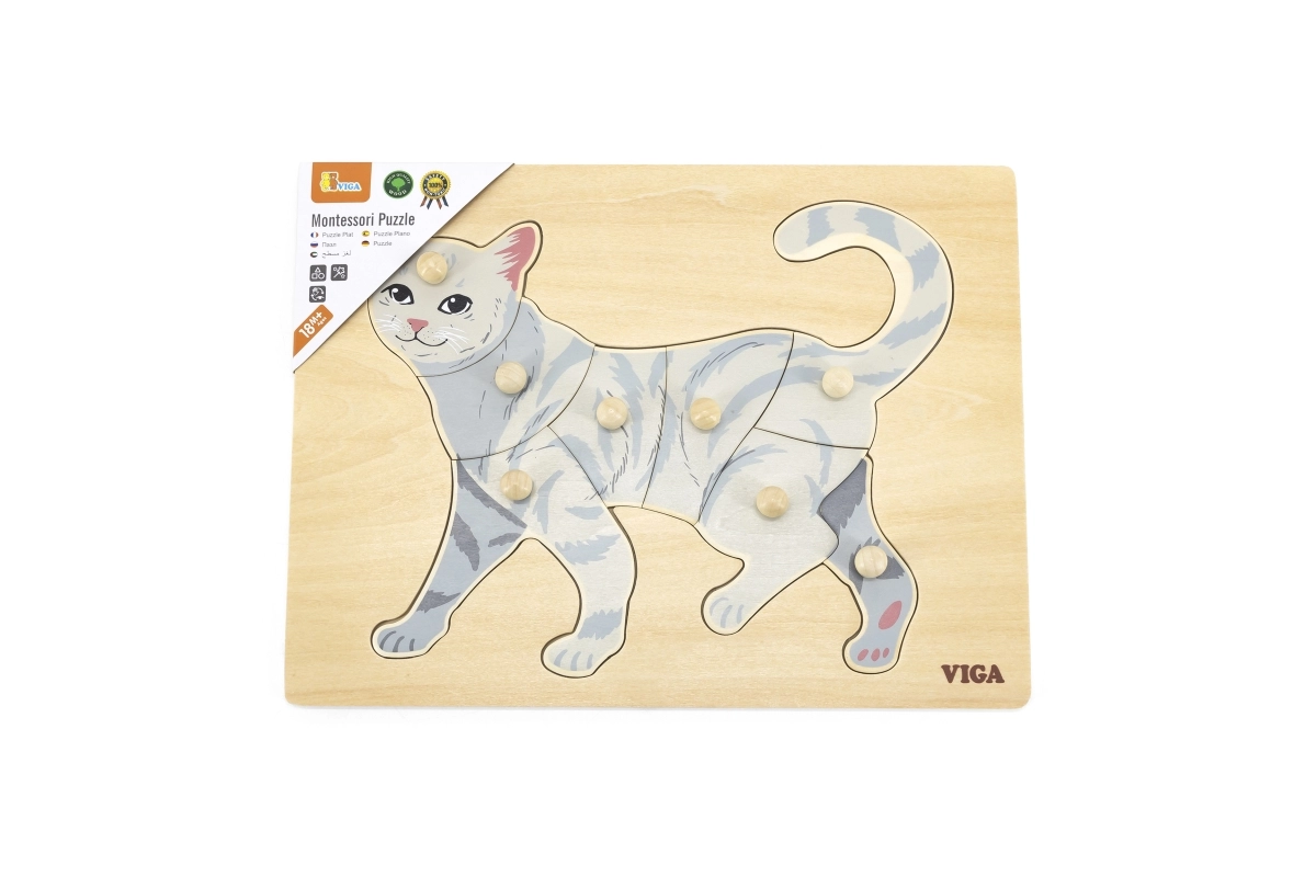 Вдъхновено от метода Монтесори: децата естествено се учат да разпознават животни, тренират осезанието и координацията на движенията и развиват пространственото въображение. Качествената дървена изработка и ясният мотив на котка приканват към многократна игра и съсредоточаване.