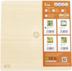 Пъзелът е изработен от качествено дърво, лакиран с безопасни, нетоксични бои и няма остри ръбове. Подходящ е както за домашна игра, така и за детска градина – развива уменията и едновременно забавлява.