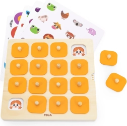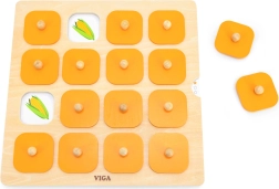 Дървената мемо игра Viga съчетава класическото мемори с качествена изработка и атрактивни илюстрации. Децата повдигат капачетата, откриват картинките и търсят еднакви двойки – проста механика, която чудесно тренира визуалната памет, вниманието и съсредоточаването. Благодарение на сменяемите карти мотивите лесно се сменят и играта никога не омръзва.