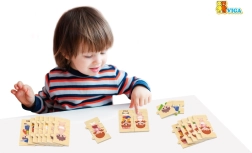 Комплектът подпомага ранното развитие на сетивата и фината моторика. Цветните илюстрации мотивират за многократна игра.