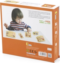 Безопасните и здрави елементи от естествено дърво са приятни на допир и благодарение на цветната графика задържат вниманието на малките откриватели. Комплектът е отличен за детската стая и детските градини като дидактическо средство за ежедневна игра.