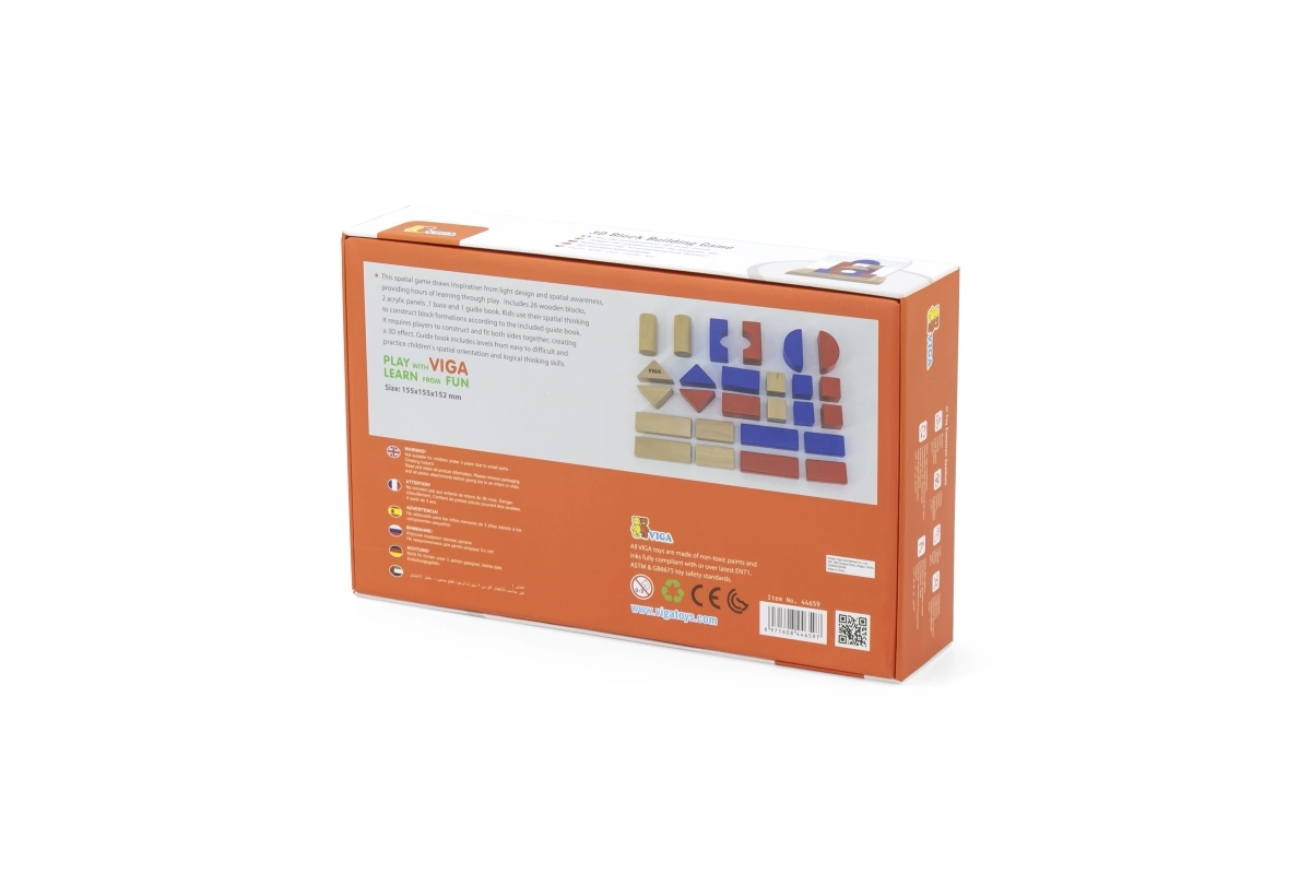 Този добре обмислен 3D конструктор от VIGA имитира проектиране в пространството – децата строят по образци и по собствена фантазия зад прозрачни акрилатни панели, които създават впечатляващ 3D ефект. Част от комплекта е книга с 32 предизвикателства с нарастваща трудност, така че играта е увлекателна както за начинаещи, така и за малки строители.