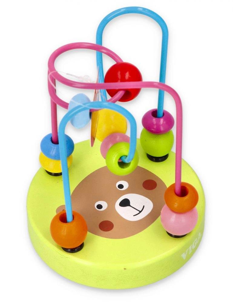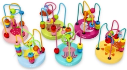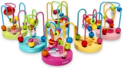 Дървеният мъниест лабиринт, познат и като моторична пътека, е класическа образователна играчка, която развива фината моторика и координацията око–ръка. Децата преместват мънистата с различни форми по извити метални пътеки, като тренират прецизни движения на пръстите и логическо мислене. Цветните мотиви върху стабилната дървена основа насърчават играта и задържат вниманието.
