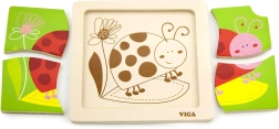 Този прост дървен пъзел с калинка е чудесен първи пъзел за малки деца. Благодарение на здравите, гладки части се държи добре в ръката и лесно се поставя в рамката. Мотивът в живи цветове мотивира към игра и подпомага концентрацията.