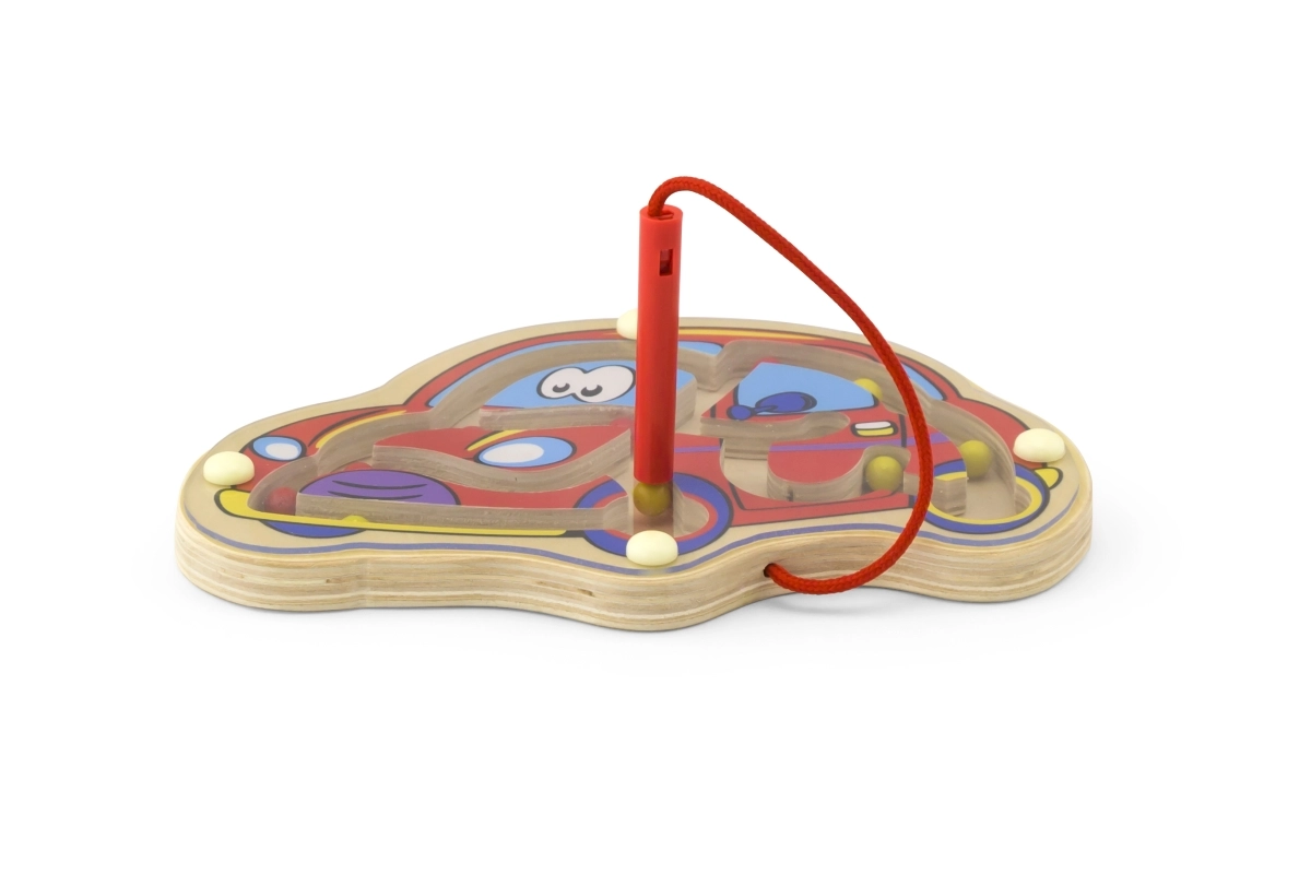 Магнитният лабиринт във форма на количка е създаден да подпомага развитието на фината моторика и когнитивните способности на вашите деца. Тази цветна дървена игра превръща ученето в забавление и игра. Благодарение на лесната употреба и премисления дизайн осигурява часове качествено забавление.