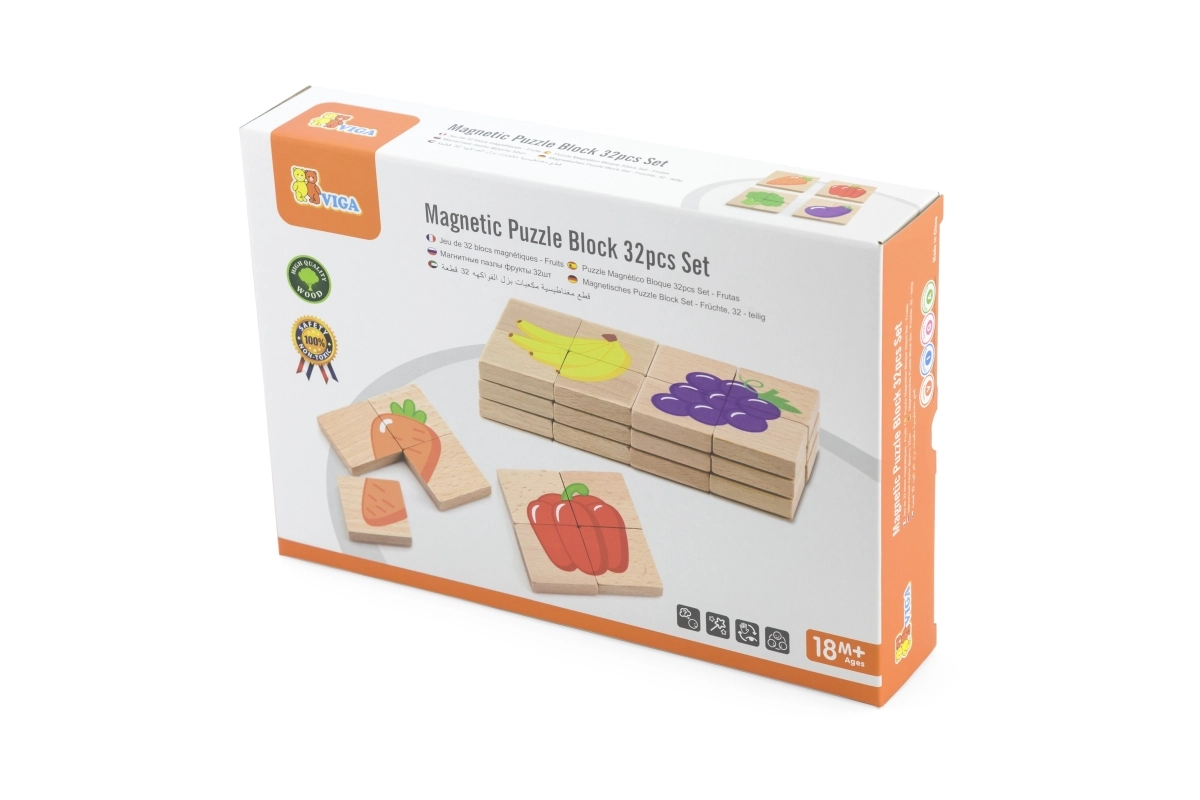 Комплектът съдържа общо 32 магнитни части, които са лесни за хващане и манипулиране. Илюстрациите на плодовите мотиви са ярки и насърчават въображението на вашето дете.