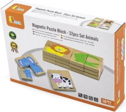 Съдържа 32 магнитни пъзела с животински мотиви, които стимулират детското творчество и ученето.