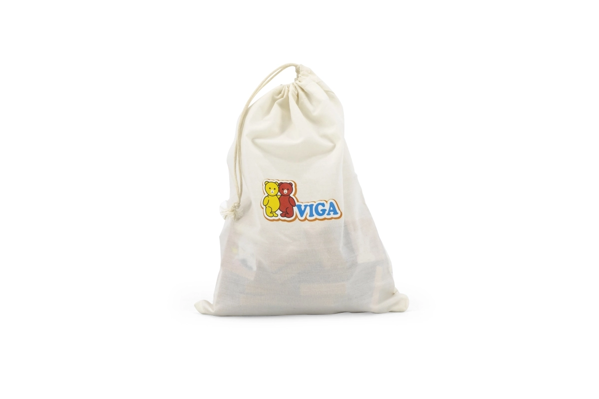 - Комплект от 32 цветни магнитни пъзела и текстилна торбичка за съхранение.
