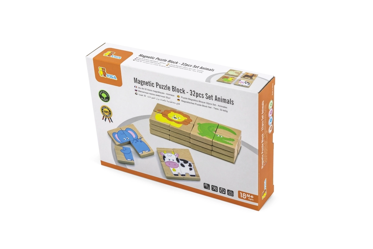 Viga Магнитни пъзели Животни предоставят на децата възможност за креативна игра и учене. Този забавен комплект включва 32 цветни магнитни пъзела с животински мотиви, които насърчават въображението и моторните умения.