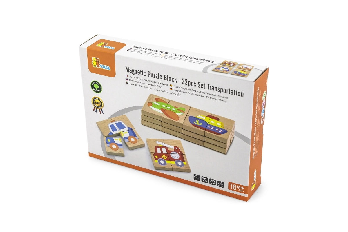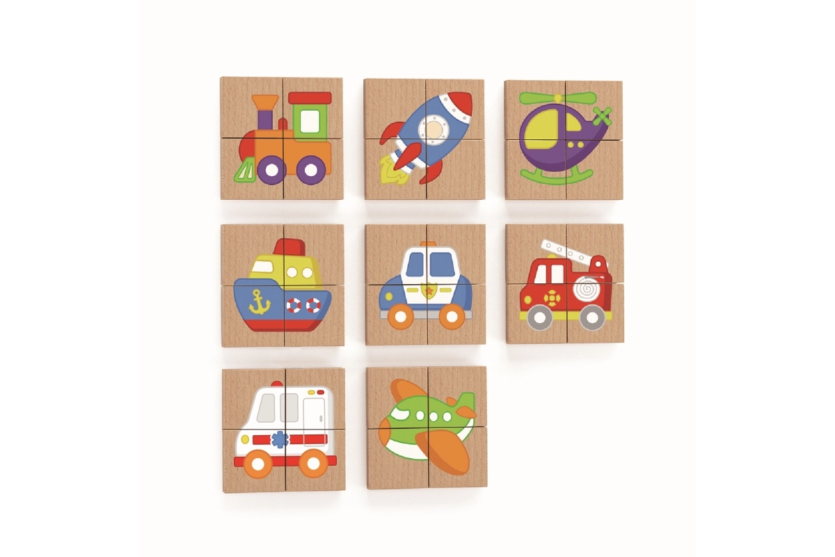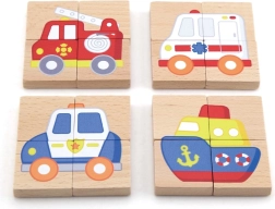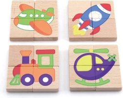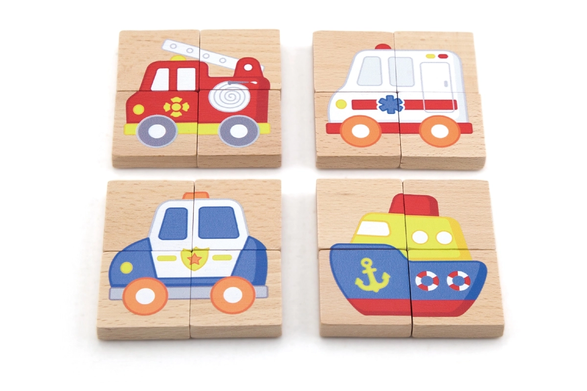 Тази впечатляваща магнитна играчка позволява на децата да подреждат изображения от 4 блокчета, които при съединяване образуват завършено превозно средство. Те лесно могат да се прикрепят към дъска и да станат част от картина или да послужат като вдъхновение за рисуване. Висококачествено дърво и нетоксични бои гарантират, че играчката е напълно безопасна за деца.