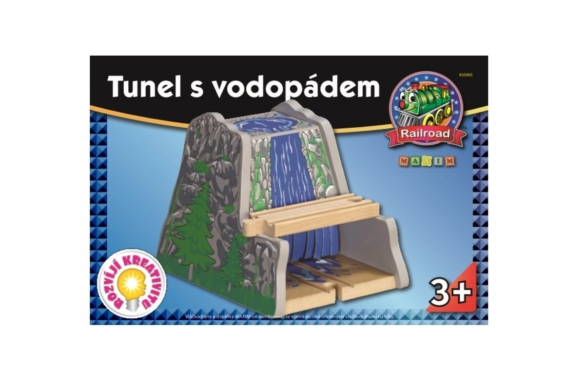 Преживейте вълнуващо планинско приключение с добавката за дървени влакчета – Maxim тунел с водопад. Реалистично преминаване покрай скали или през воден поток добавя напрежение и забавление към играта. Идеален за деца от 3 години, подпомага фантазията, сюжетната игра и фината моторика.