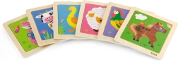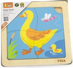Дървените пъзели Viga съдържат четири тематични елемента, които лесно се поставят върху дъска с изображение. Всеки елемент е изработен от висококачествено дърво и е боядисан с безопасни, нетоксични бои, които гарантират безопасността на децата и опазването на околната среда.