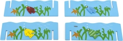 Комплектът включва басейн с размери приблизително 35 × 13 × 5 cm, четири магнитни въдици за съвместна игра и 20 рибки с числа, които подпомагат ранната математическа грамотност и сортирането. Благодарение на магнитните накрайници улавянето на рибките е интуитивно и забавно.