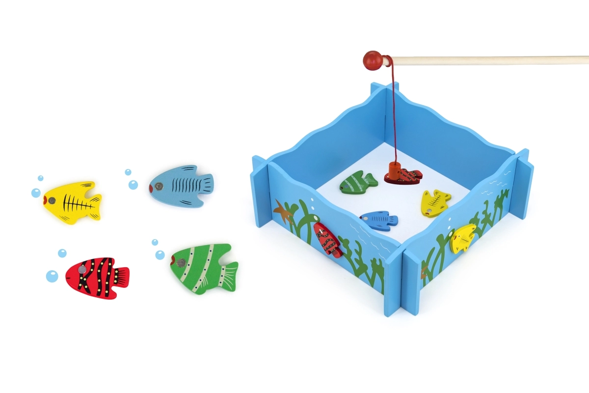 Улавянето на рибките с магнитна въдица тренира прецизност, търпение и координация. Цветните рибки мотивират към многократна игра.