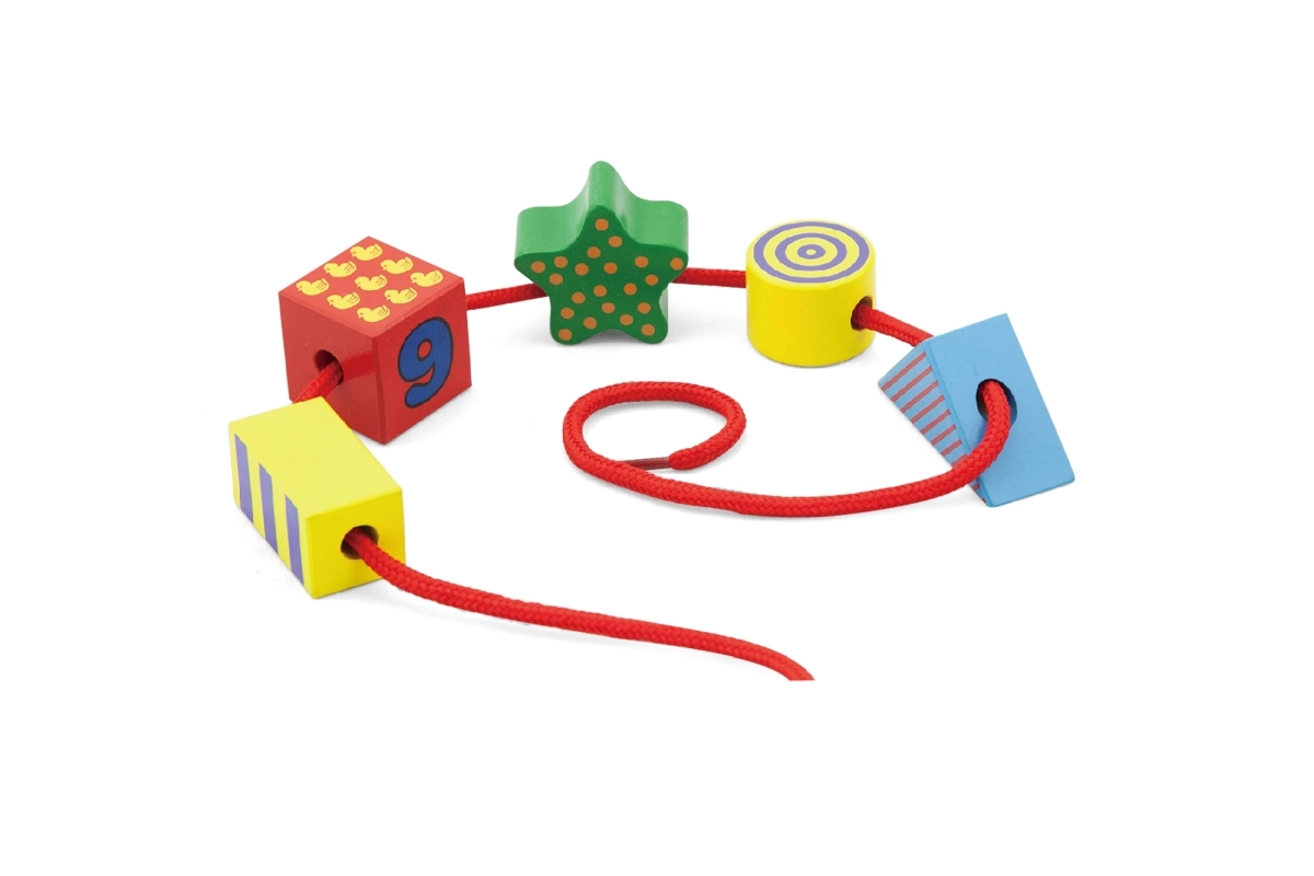 - Подкрепа на фината моторика – промушване и манипулиране с елементите.