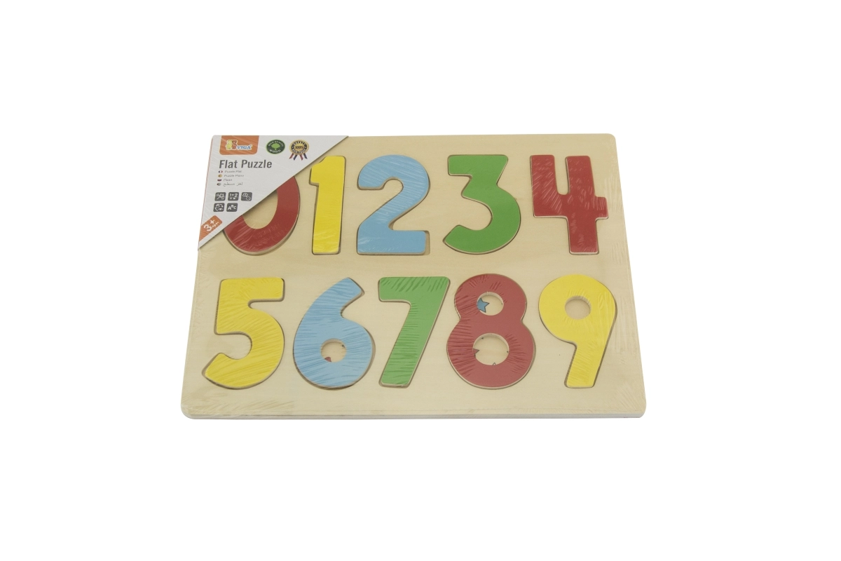 Тази дървена числова вложка предлага десет самостоятелни цветни елемента с цифри 0–9, които се поставят в съответните изрези. Децата по естествен начин усвояват разпознаването на цифрите и упражняват търпение и концентрация.