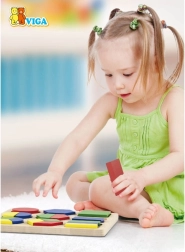 Благодарение на ясното подреждане и ярките цветове децата бързо разбират принципа на съотнасяне и постепенно тренират търпение и концентрация. Безопасните материали и гладките ръбове са съобразени с малките детски ръчички.