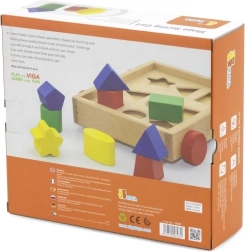 Дървената сортираща игра - количка предлага на децата забавен и образователен начин за подобряване на фината моторика. Комплектът включва количка с размери 24,5 x 22 x 7 см и 9 цветни блокчета с различни форми, които трябва да бъдат поставени правилно. Тази количка мотивира децата да играят, докато се учат на разпознаване на форми.