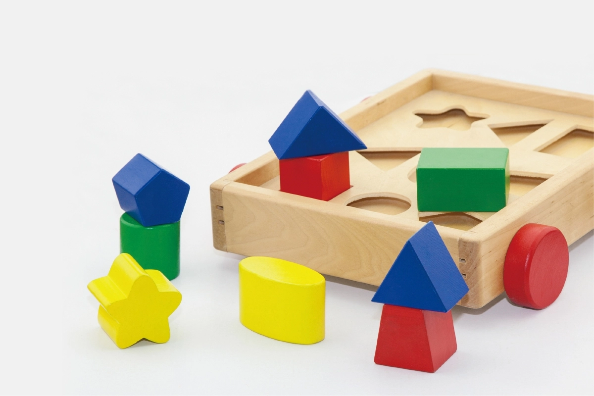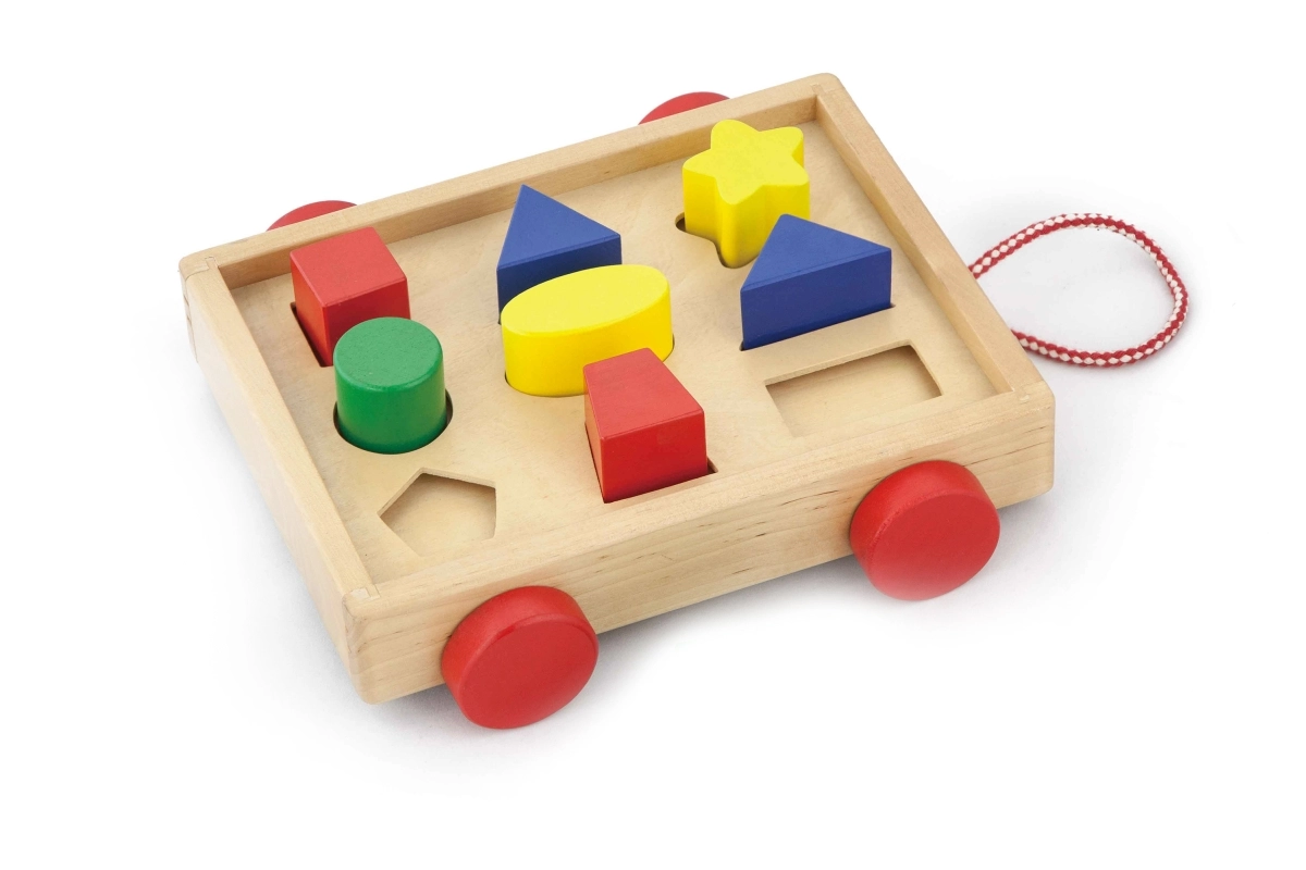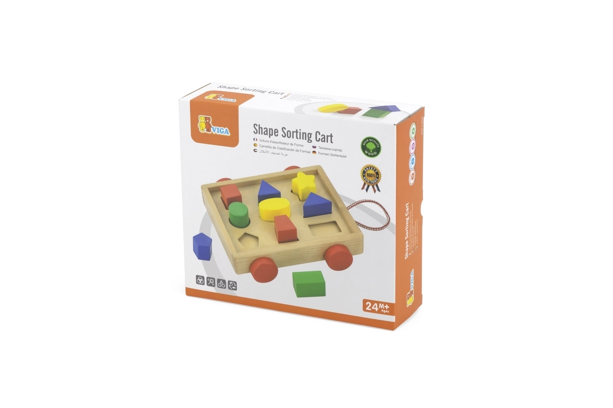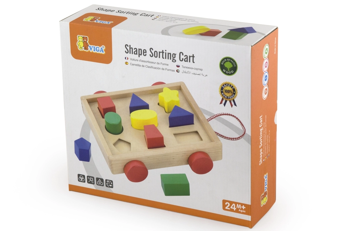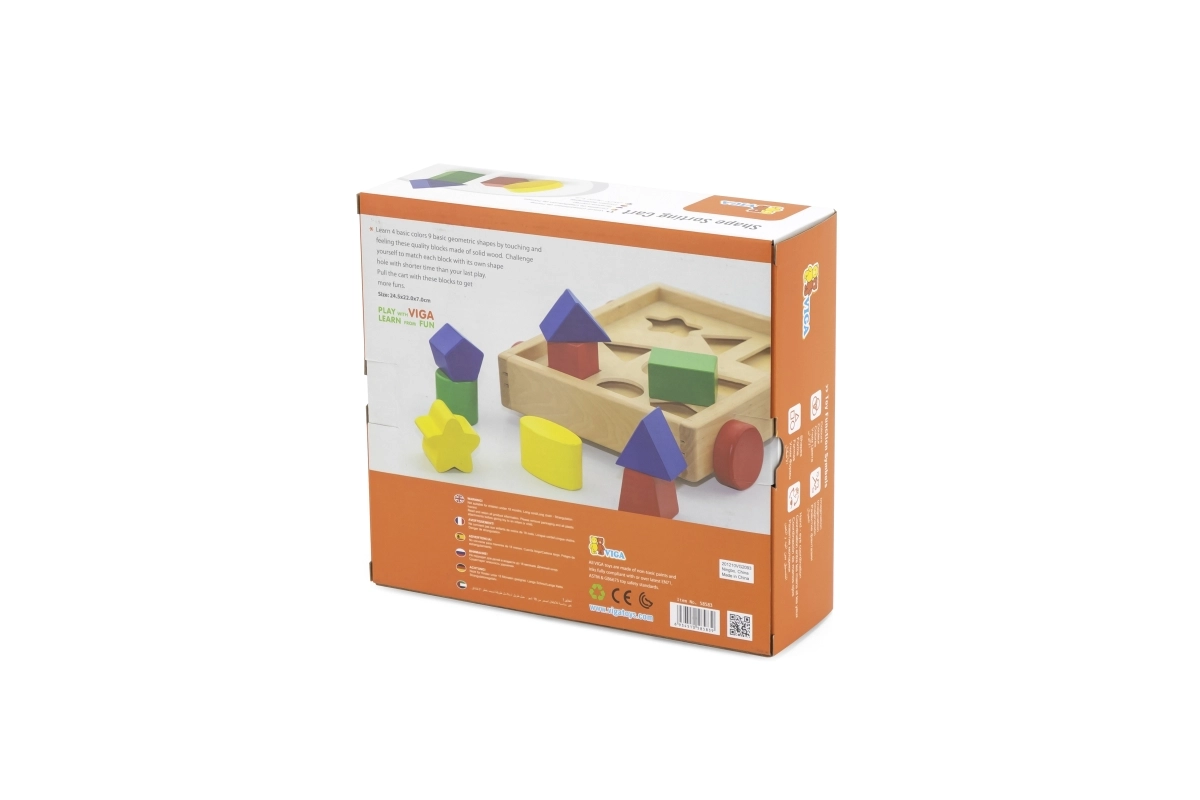 Количката съдържа различни геометрични форми, които позволяват на децата по забавен начин да се учат да разпознават различни форми.