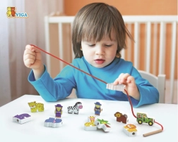 VIGA Дървени нанизващи фермерски блокчета Монтесори