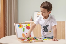 Този универсален магнитен конструктор предлага на децата безкрайни възможности за подреждане на форми, картинки и прости мозайки. Двете вътрешни страни на куфарчето служат като магнитна дъска, така че елементите стоят стабилно на място, а творенето е удобно и прегледно. Благодарение на компактните размери е идеален за път, за колата и за гостувания.