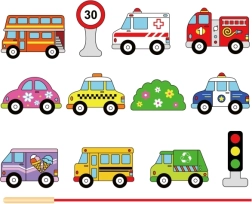 Децата ще разпознават пожарна, полиция, автобус и такси, а при нанизването ще тренират пръстите, концентрацията и координацията око–ръка.