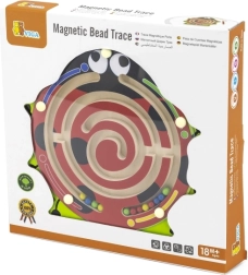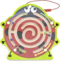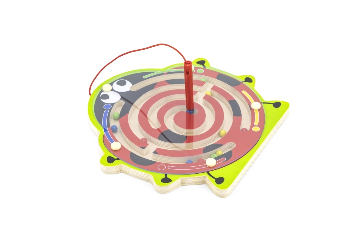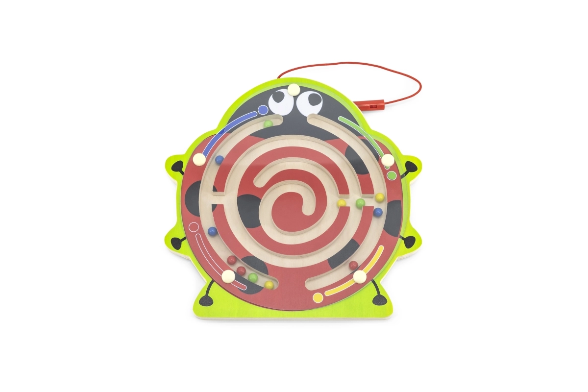 Този качествен дървен магнитен лабиринт калинка предлага на децата цветен свят на откривателство. С включената магнитна писалка те придвижват топчетата по добре замислени пътеки, като по естествен начин укрепват захвата, тренират координацията око–ръка и подобряват концентрацията. Здравата дървена конструкция и затвореният дизайн гарантират безопасна игра без свободни части.