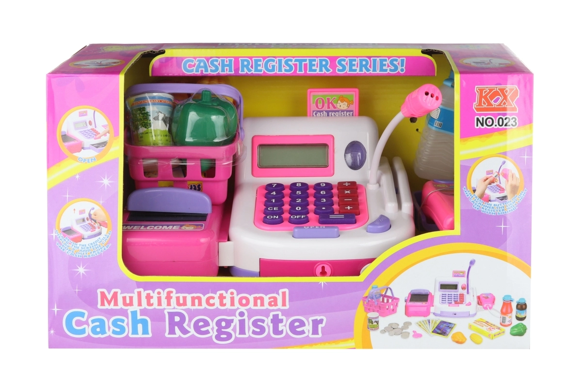 Забавна детска каса с функционален лентов транспортьор и скенер ще зарадва всеки малък продавач. В комплекта има пазарска кошничка, монети и реалистични функции, работещи с 2× AA батерии. Идеалната играчка за развитие на въображението и игра на магазин за деца от 3 години.
