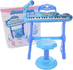 Синьо детско пиано предлага не само класически тонове, но и различни фонови мелодии и възможност за промяна на музикалните инструменти. В комплекта са включени микрофон и конектор за MP3 плейър.