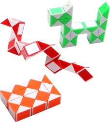 Открийте креативна главоблъсканица, която по забавен начин развива логика, стратегия и фината моторика. Магическата „змейска“ кубчета с дължина 26 см се състои от въртящи се триъгълни сегменти, които могат да се завъртат на 360° и да създават безброй оригинални форми и шарки. Идеална като антистрес фиджет играчка и умно забавление за път. Опаковката съдържа 1 бр., цветът се доставя в микс според наличностите.