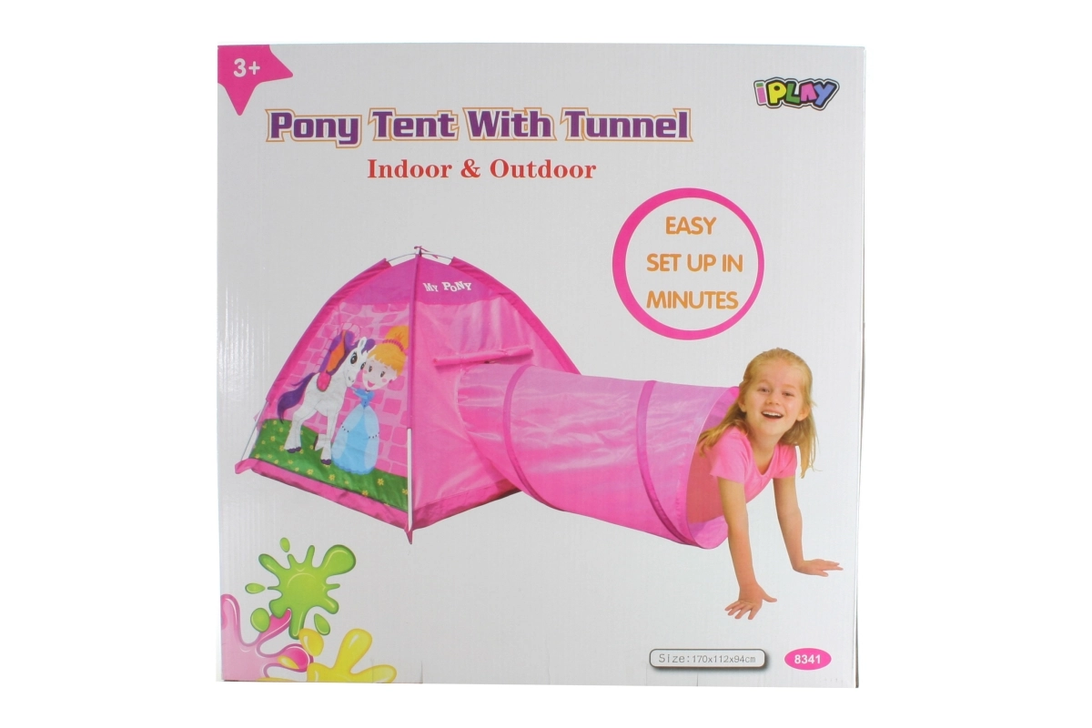 Създайте на децата вълшебно място за игра с детската палатка с тунел. Благодарение на мотива с пони и принцеса малките любители на приказки ще се наслаждават на часове забавление. Палатката е подходяща за детската стая и за градината през топлите дни.
