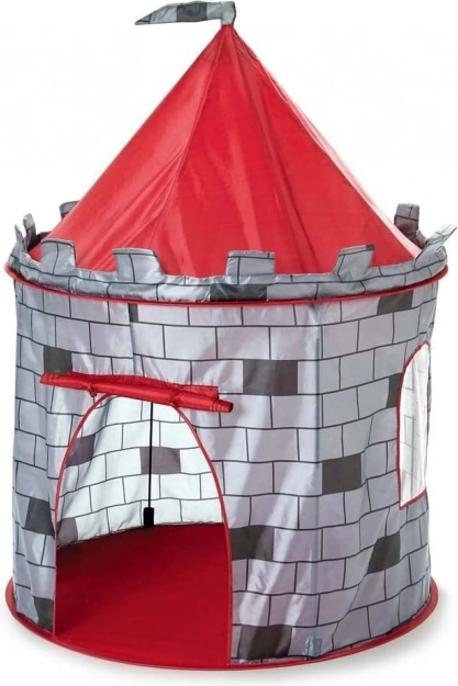Детската игрова палатка в стил рицарски замък развива фантазията и стимулира самостоятелната игра. Благодарение на ролетния вход децата си създават тайно укритие, а двете мрежести прозорчета осигуряват циркулация на въздуха и поглед към случващото се навън. Идеална за рицарски битки, четене и спокоен отдих.