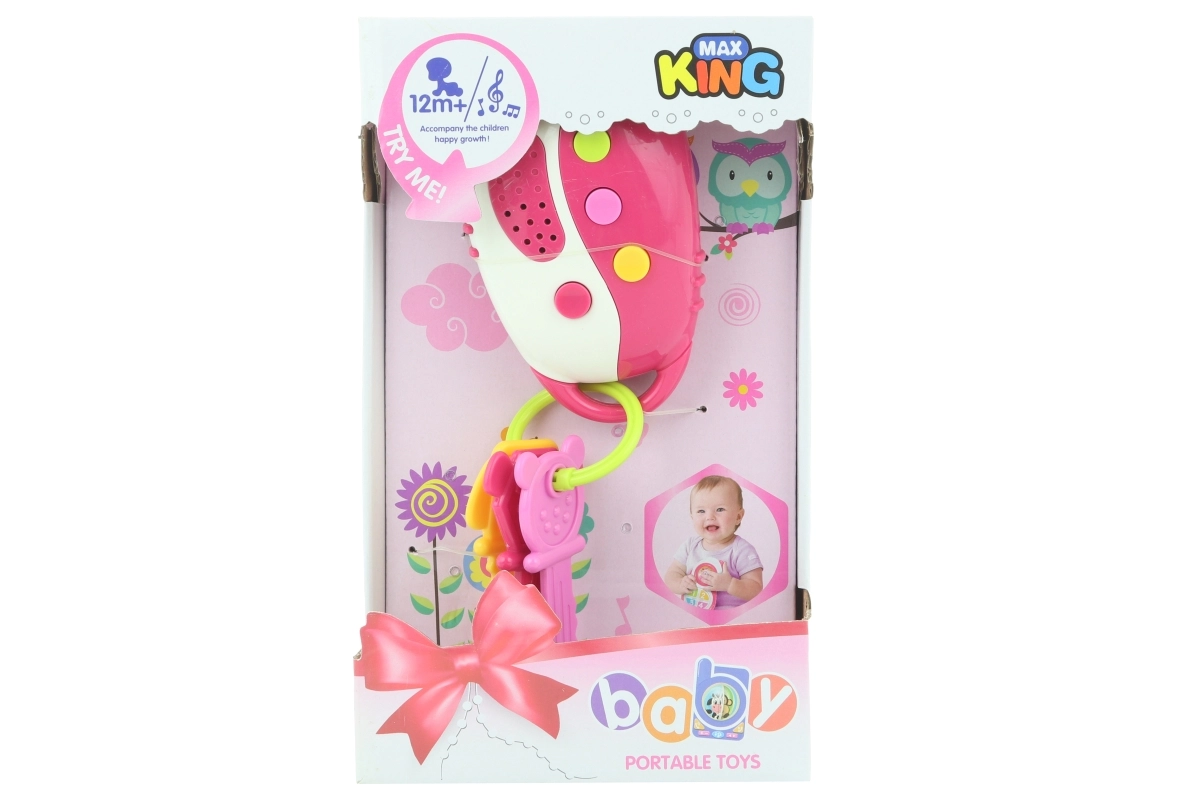 Розови ключове за най-малките със звукови ефекти, захранвани с две AA батерии, които са включени в комплекта.